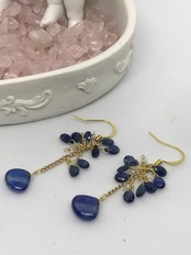 9月の誕生石、サファイアを使って揺れるピアスを制作いたしました。