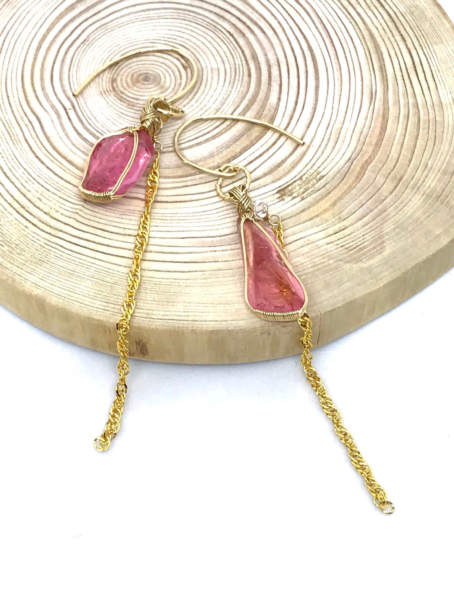 シェラネバダ産小粒アンダラクリスタル、ピンクをk研磨し、14gfでピアス・イアリングにお創致しました。