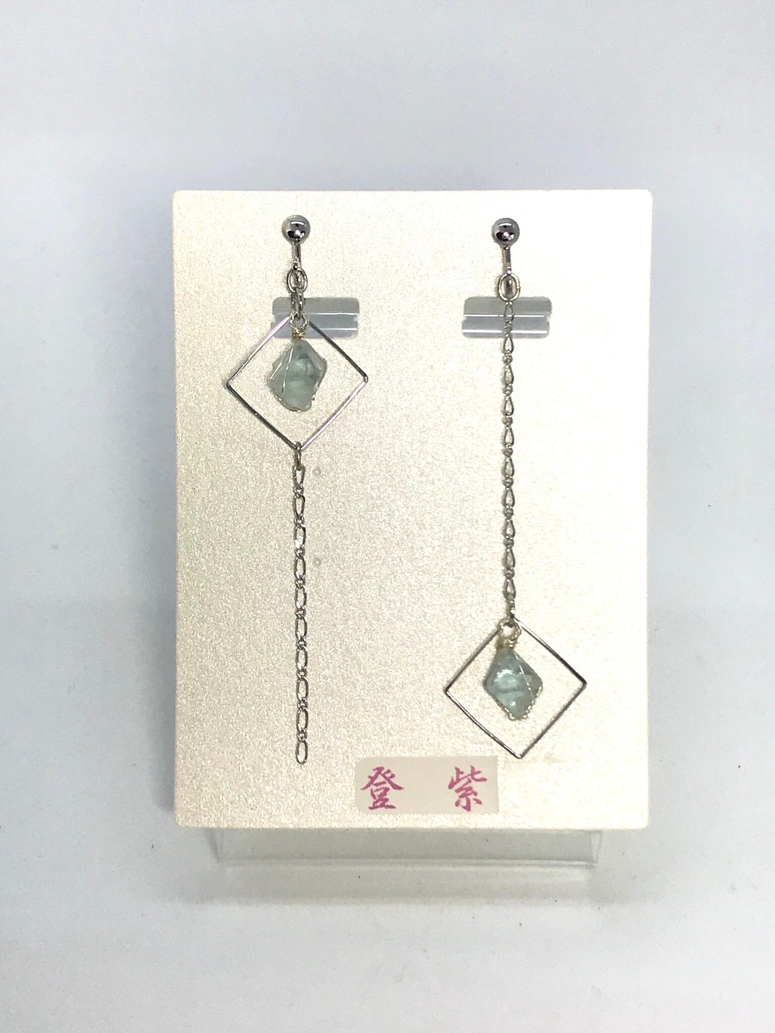 フローライトを らくまくワイヤー(日本製)で アシンメトリーピアス(イアリング) にお創致しました。