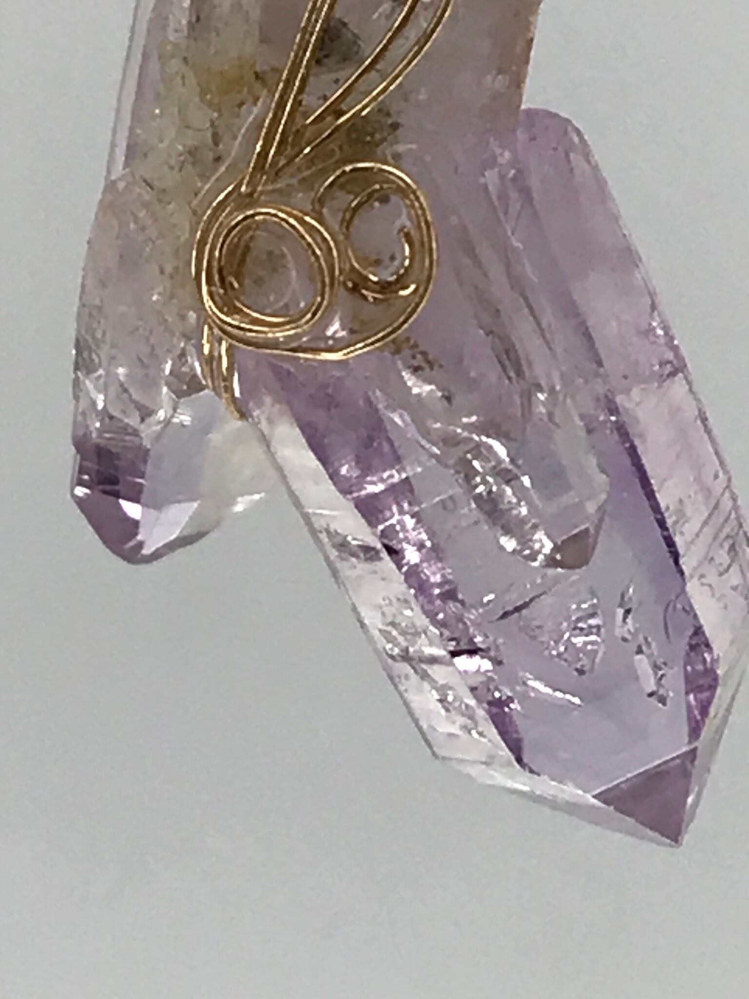 淡い紫、透き通るようなクリア、細長い結晶が美しく、世界一美しいアメジストと言われています。