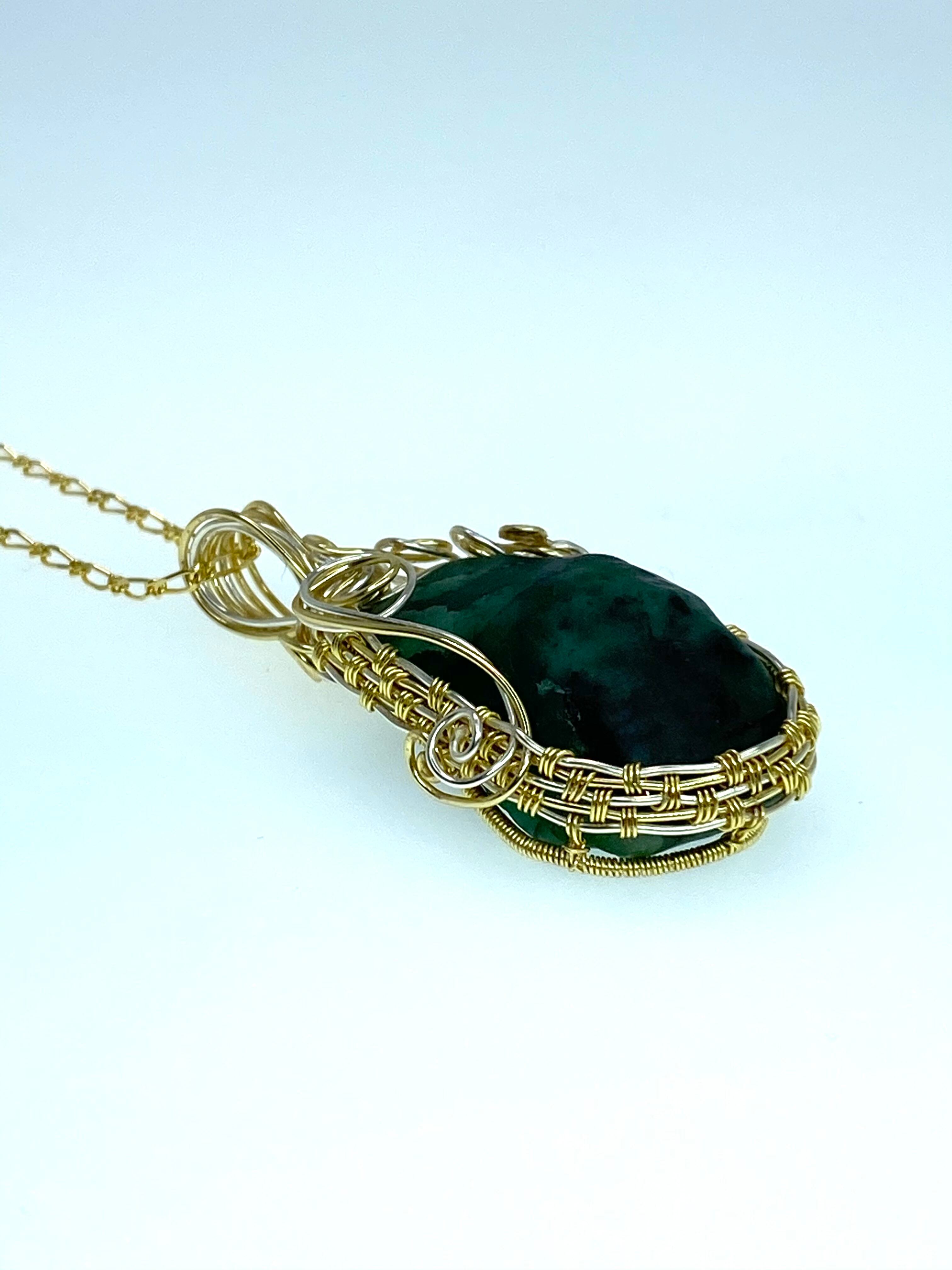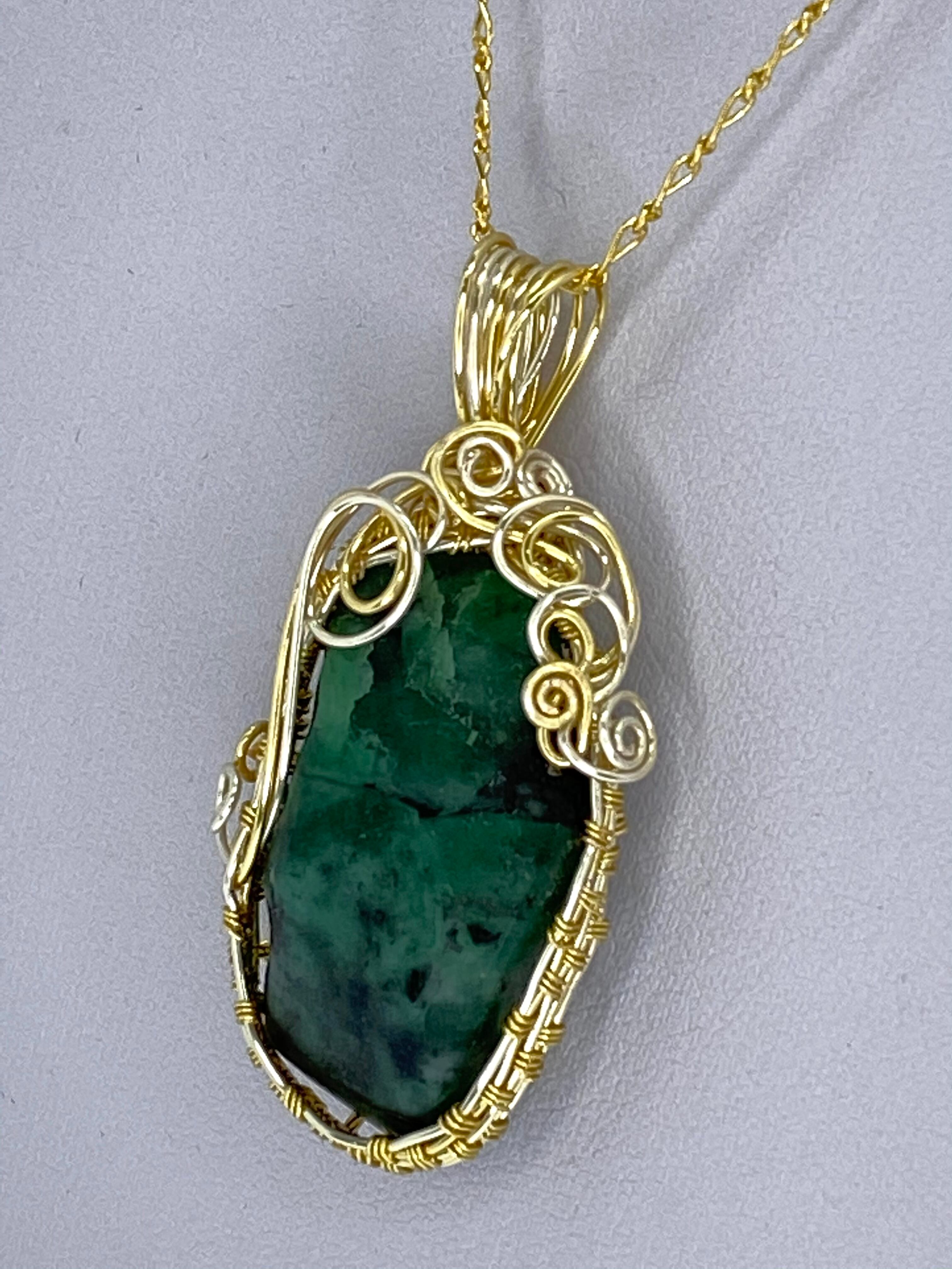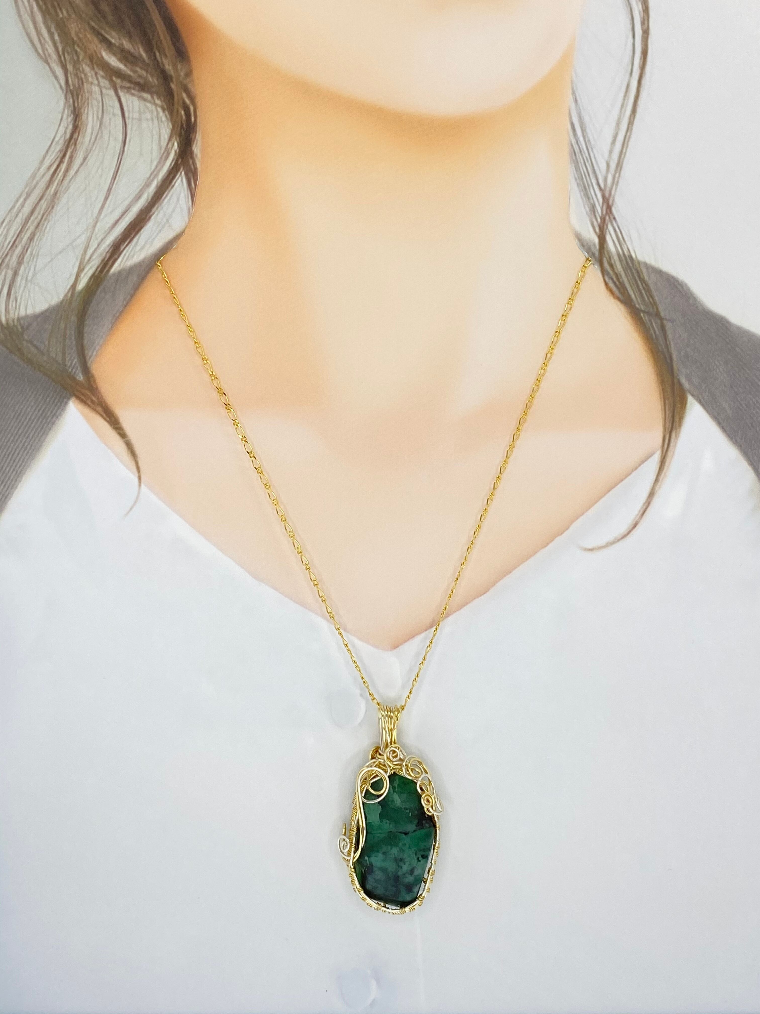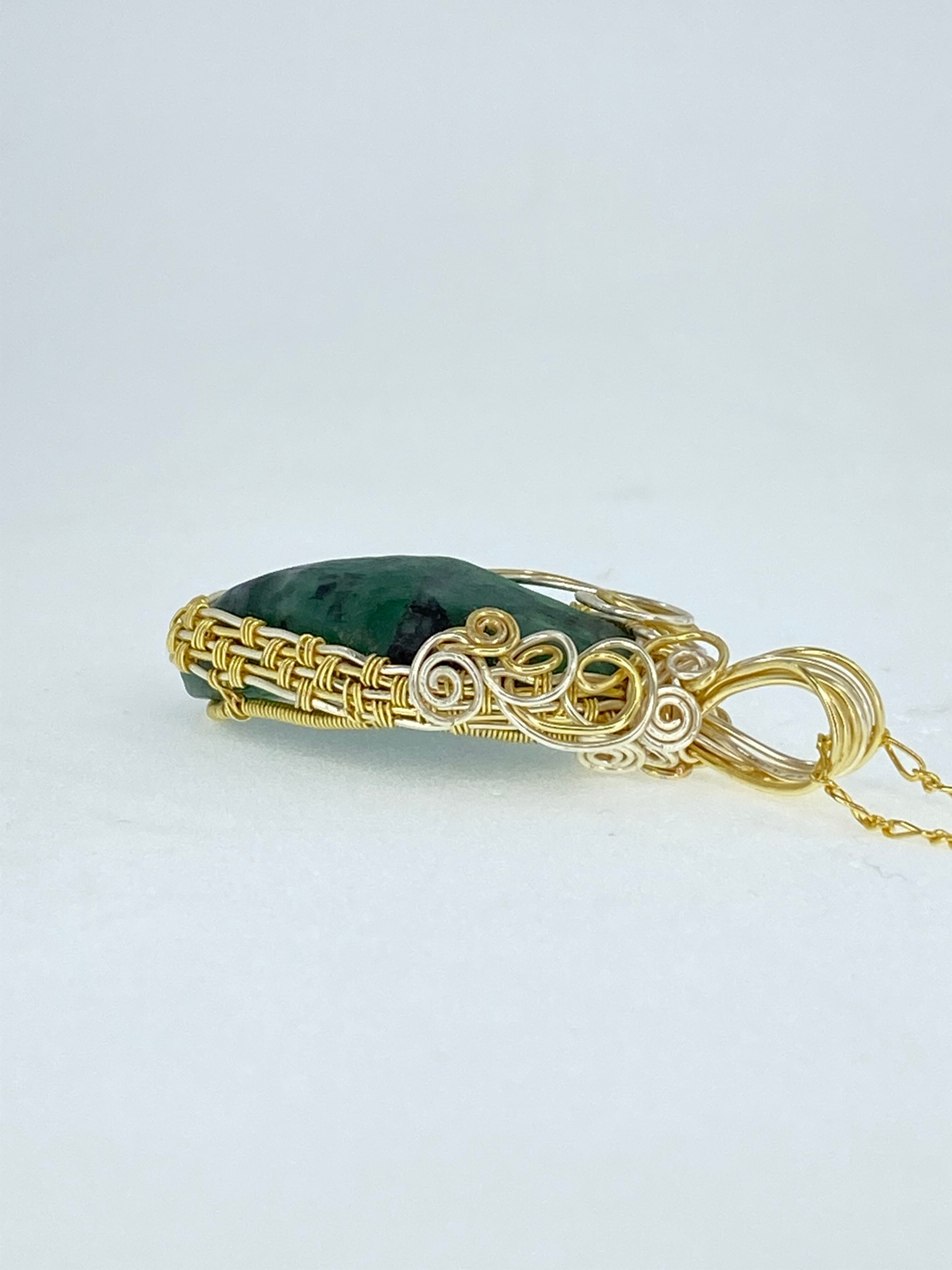 母岩付きエメラルド原石の表面を滑らかに研磨し