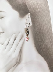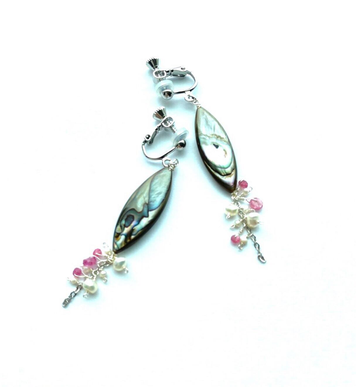シェル&レッドスピネル&淡水パール・イヤリング,ピアス