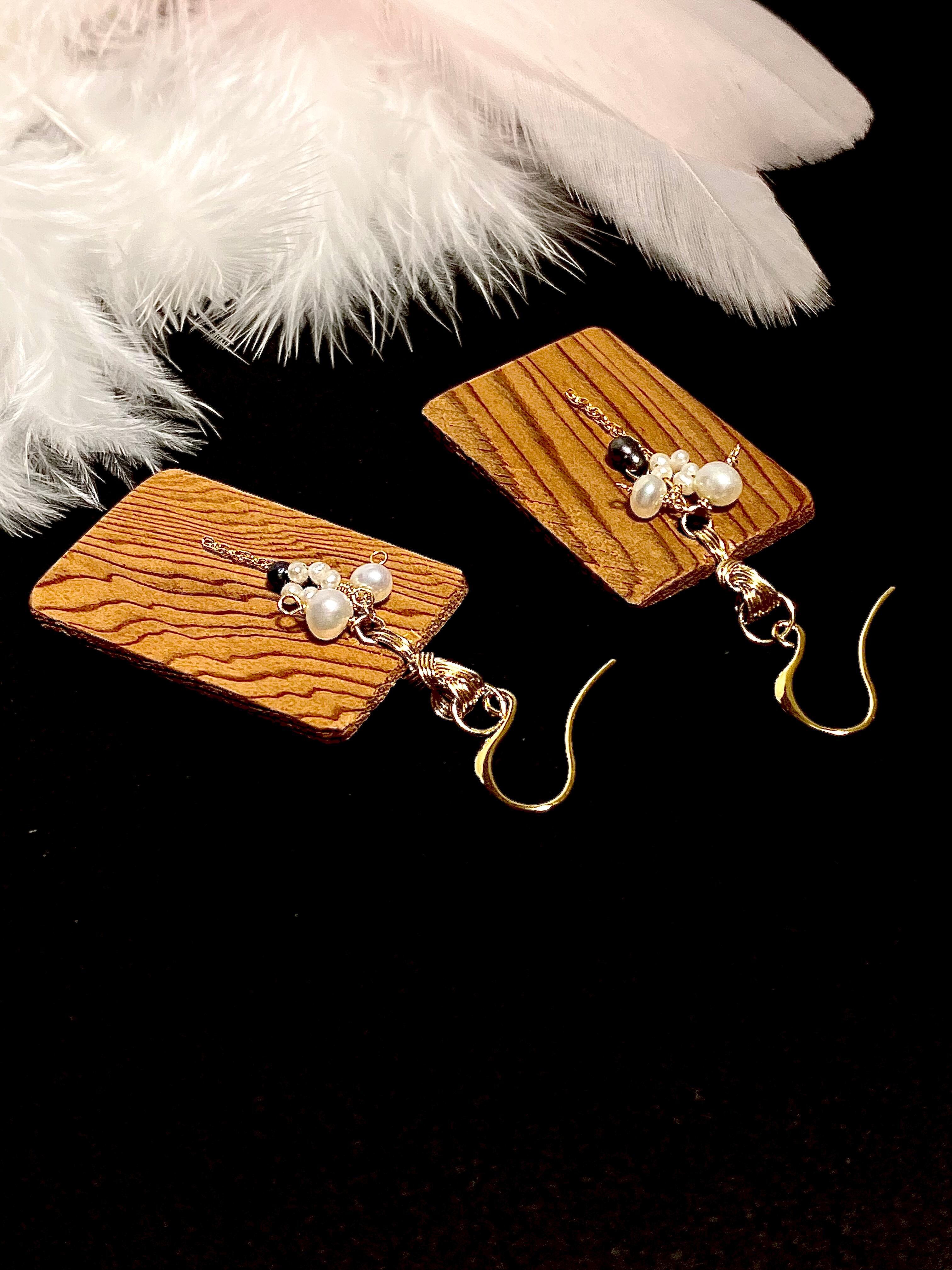御神木屋久杉・淡水パールピアス/イヤリング